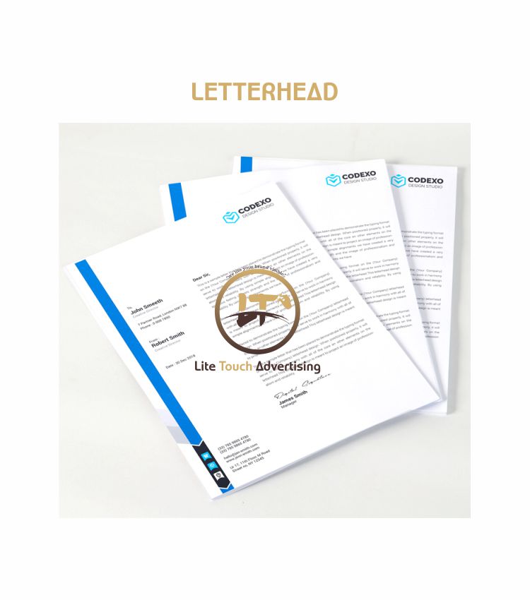 By engaging Lite Touch you ensure your letterhead design is perfectly and professionally printed, thus accurately showcasing your reputation. Our letterhead printing technique ensures that each page is skillfully printed with your company’s corporate identity/brand and contact information.